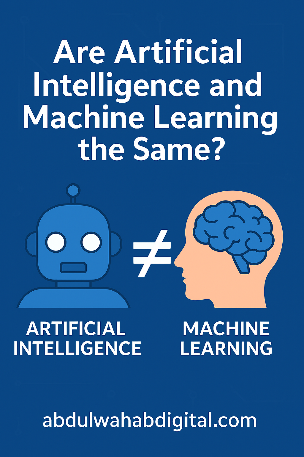 Artificial Intelligence (AI) and Machine Learning (ML) are two of the most popular buzzwords in technology today. People often use them interchangeably, but they are not the same. While they are closely related, AI and ML serve different purposes, and understanding the distinction can help students, professionals, and business owners make better decisions about how to use them.